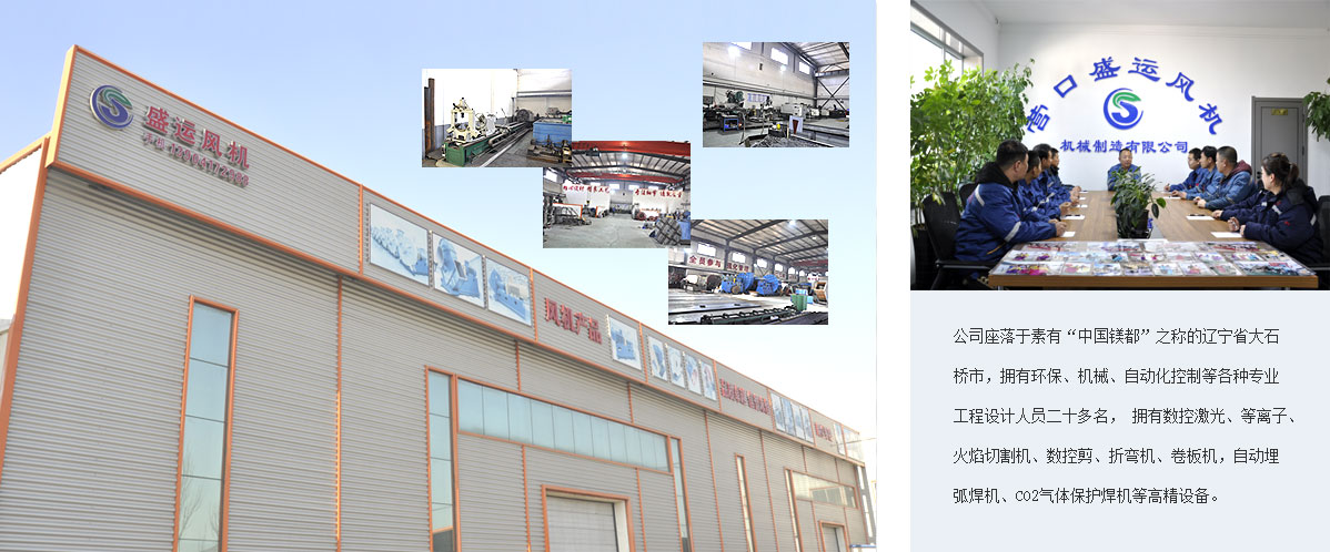 營口盛運風機機械制造有限公司是一家從事各類風機機械、除塵系統的研發、設計、制造為主的專業生產企業。公司座落于素有“中國鎂都”之稱的遼寧省大石橋市,